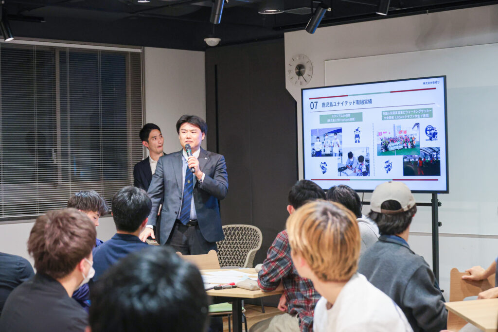 また、地元の価値あるコンテンツの一つである「鹿児島ユナイテッドFC」を題材に据えることで、若者が地域の魅力やプロクラブの事業展開を深く知る機会を創出できたことも大きな成果です。単なる選考対策に留まらず、地元の資産に触れながらビジネス視点を養う経験は、今後のキャリア形成において大きな財産になると確信しています。